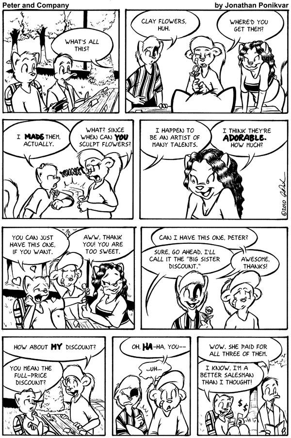 Once I had my shop set up on the sidewalk, the one person who bought more flowers than anyone else from me was the real-life Chelsea. She would buy at least one flower usually multiples, in fact each and every day once I moved the bench to the front yard. I doubt she was being threatened by my older siblings to do so, but at the time I still had to wonder what had triggered her fascination with my sculptures. Our epic feud was put on hold so she could buy a rose and a few daisies. Go figure.