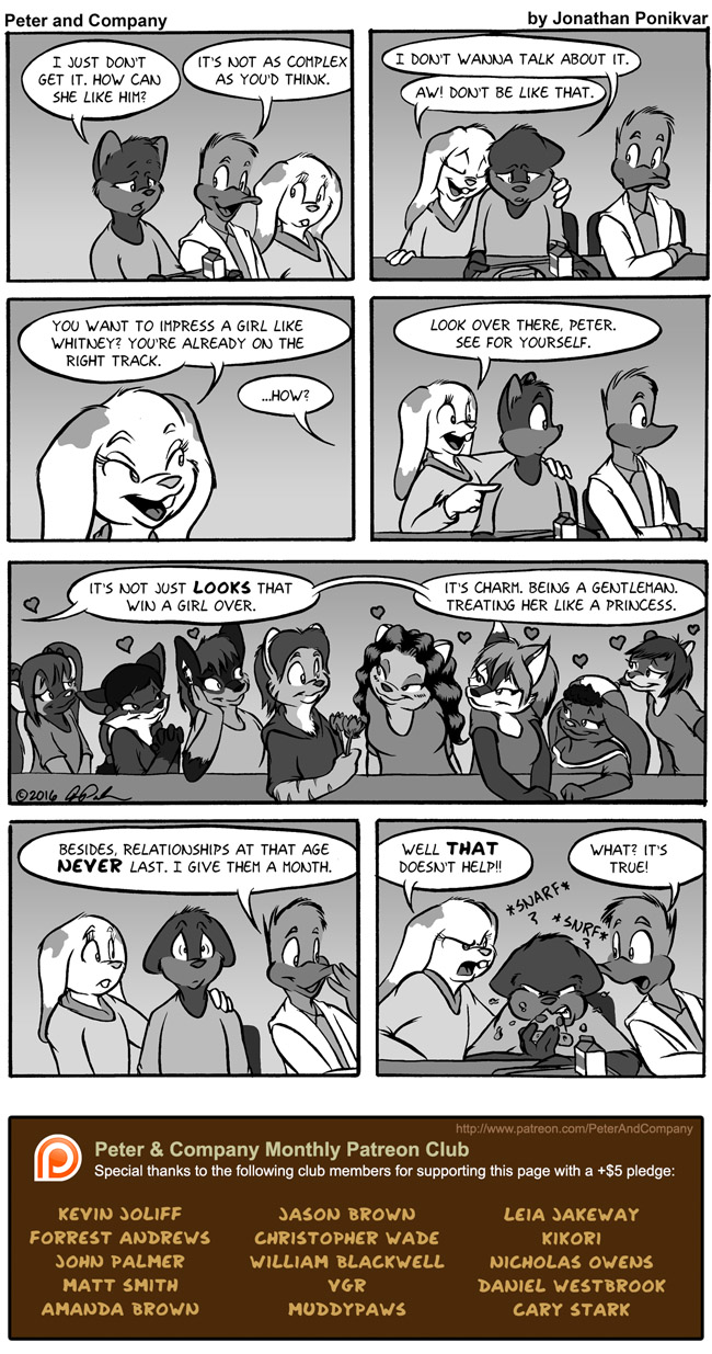 And special thanks to those who pledged this month towards this page! In celebration of the upcoming Peter & Whitney sequel series coming close to launch, the Peter & Company Patreon campaign has now permanently been lowered to just $5 a month instead of $10! All the same bonus content for half the price.