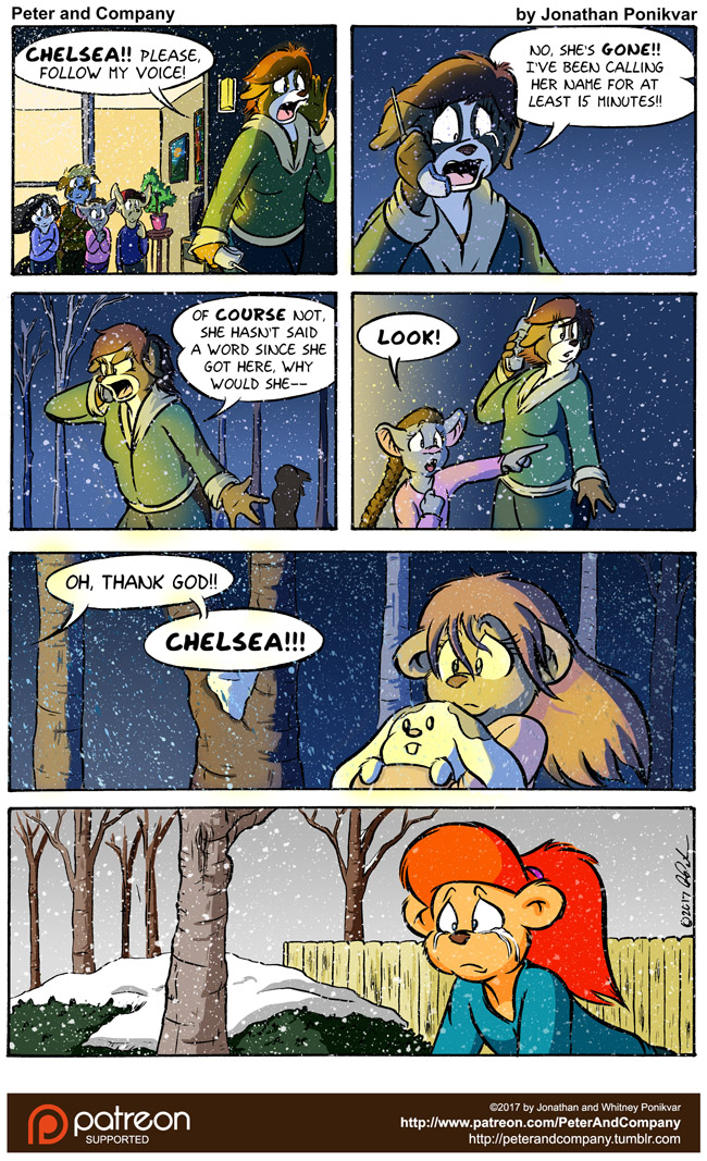 This was actually the condensed version of the story. A more complete telling of Chelsea and Pearl's first meeting (with additional pages both before and after the events shown here) are included as a bonus mini-comic in the upcomic second Peter & Company collection book, Of Cats and Crushes.