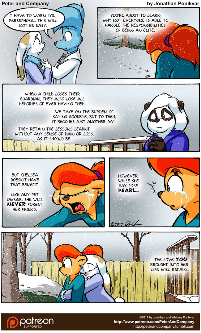 This is the first big reveal for what happens to kids after they lose their Guardians. For most children, they simply forget ever having them, but they retain all the lessons and experiences that they had with them. Those with Elites, however, never forget them. To these children, their Guardians aren't Guardians; they are pets, friends, and individuals of significance within their lives.