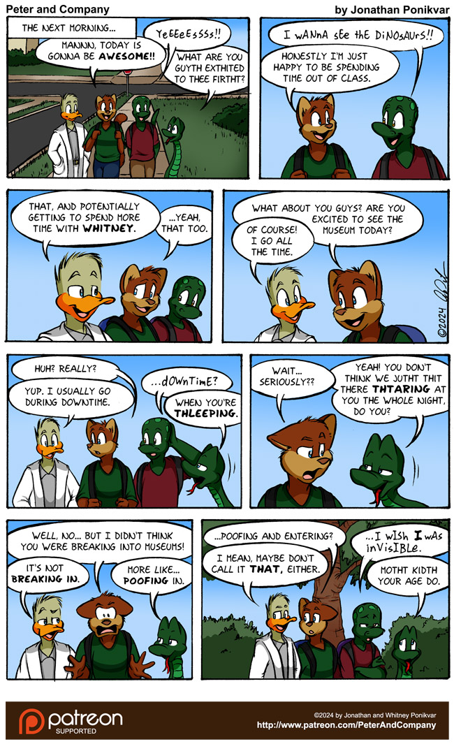 The specifics about what Guardians do while their kids are sleeping has never really been explored that deeply in the comic yet. I've shown Seth visiting with Persephoni or reading books as Peter is waking up, but for the most part that whole 8-hour block of the overnight shift has been a mystery. It makes sense that Guardians would use their invisibility to their advantage and go check out some fun stuff during downtime after hours.